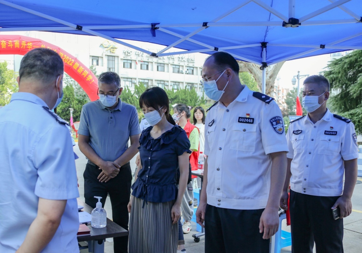 新生报到当天,学院党委委员、副院长黄进及雨花台区教育局副局长刘革平深入报到现场,实地走访查看了报到接待、被装发放、学生公寓等报到场所,实地检查报到登记、疫情防控、安全保卫等工作并提出明确要求,看望慰问校区迎新团队全体工作人员,对迎新现场热情洋溢的氛围、细致周到的服务、团结合作精神给予了充分肯定。