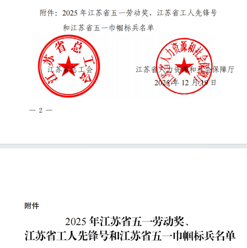 近日,江苏省总工会、江苏省人力资源和社会保障厅联合印发《关于表彰2025年江苏省五一劳动奖、江苏省工人先锋号和江苏省五一巾帼标兵的决定》,网安系被授予“江苏省工人先锋号”荣誉称号。
