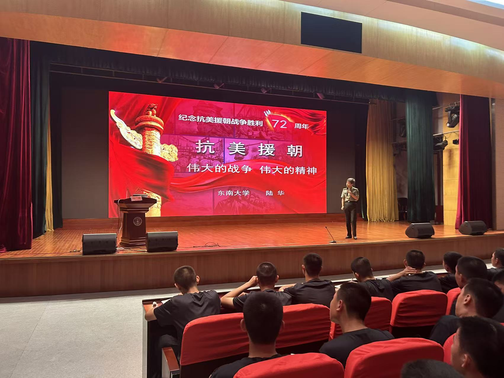 2025年9月6日我院邀请东南大学陆华教授,在学院学术报告厅(一)为我院2025级新生开设题为《抗美援朝——伟大的战争 伟大的精神》的国防教育讲座。400名新生现场聆听了讲座,1453名同学通过录播系统实时观看。