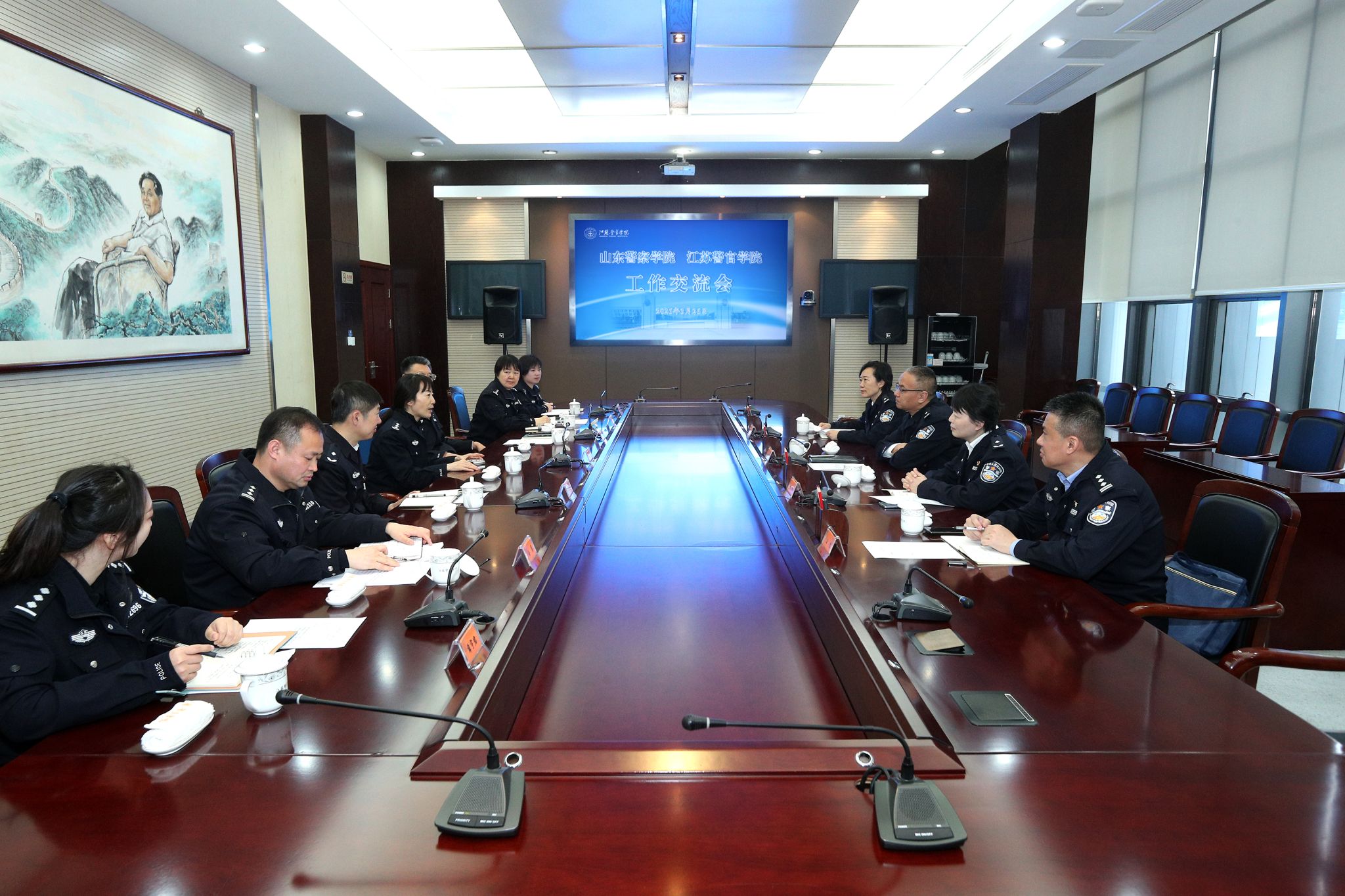 3月26日,山东警察学院党委委员、纪委书记、省监委派驻监察专员刘竹林一行4人来我校调研。学院党委副书记、院长黄进,学院党委委员、纪委书记、省监委派驻监察专员殷其新出席座谈交流。