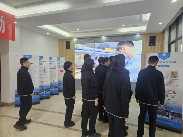 活动内容充实、环节紧凑。实验室安全应急演练是核心。先是模拟火险,师生按预案迅速有序疏散逃生;接着在安保处人员指导下进行灭火实操,掌握消防器材使用方法,提升初期火灾扑救技能;最后师生共同参与实验室安全知识展览,展览以海报形式在实验楼集中展示危化品管理、水电燃气安全规范及典型事故案例警示等内容,营造“学安全、讲安全”浓厚氛围。