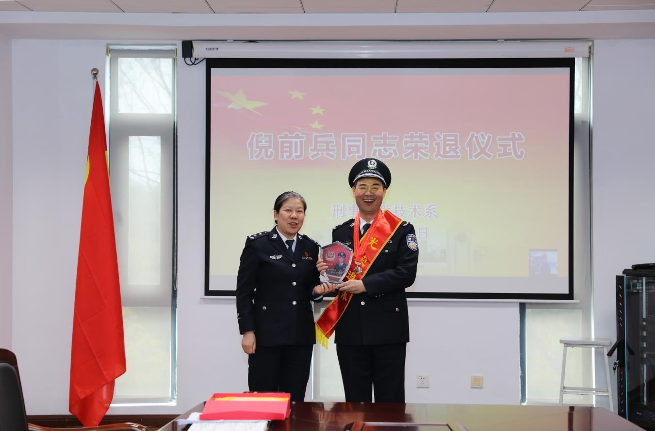 2026年3月20日,刑事科学技术系为倪前兵同志举行光荣退休仪式。系全体教师共同参加,见证这一温情时刻。学院党委委员、副院长刘蔚文出席本次仪式。