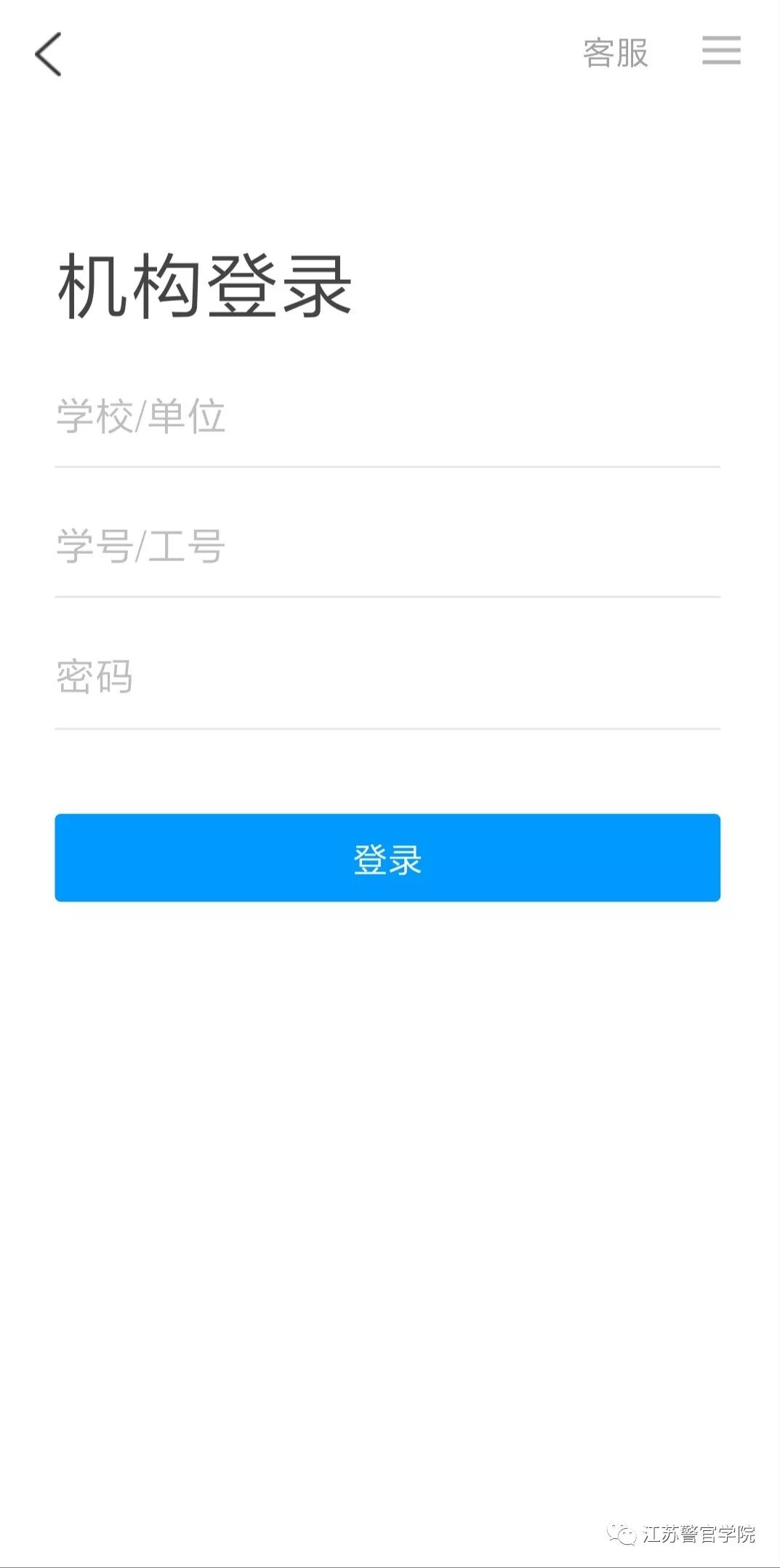 学校单位请输入“江苏警官学院”,依次输入学号或工号,初始密码为123456,首次登录需要绑定手机、修改密码。