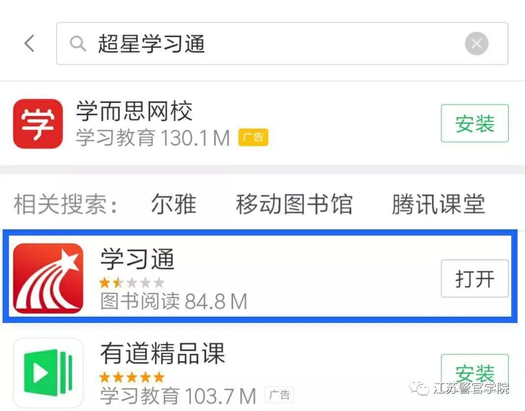在手机应用市场搜索“超星学习通”并下载安装。