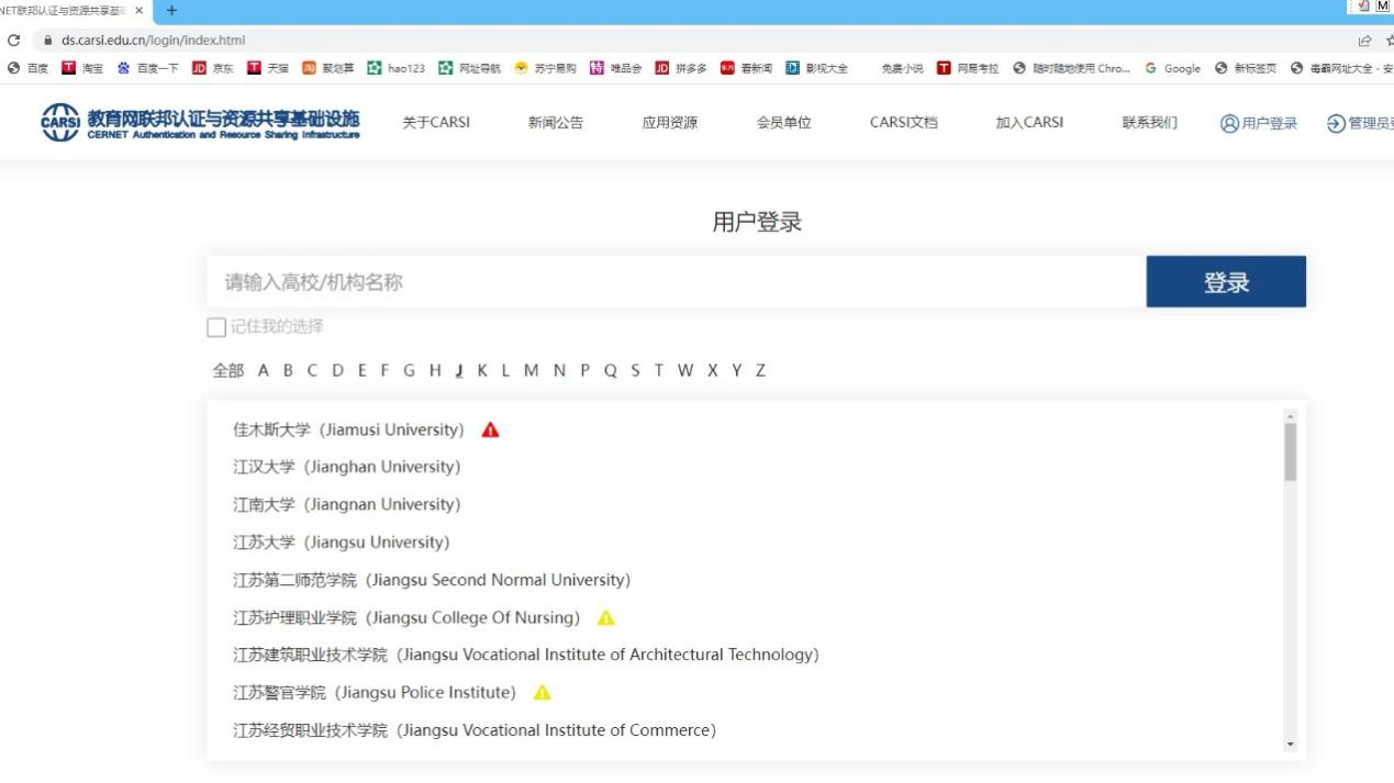 第一步:打开网址:https://ds.carsi.edu.cn/