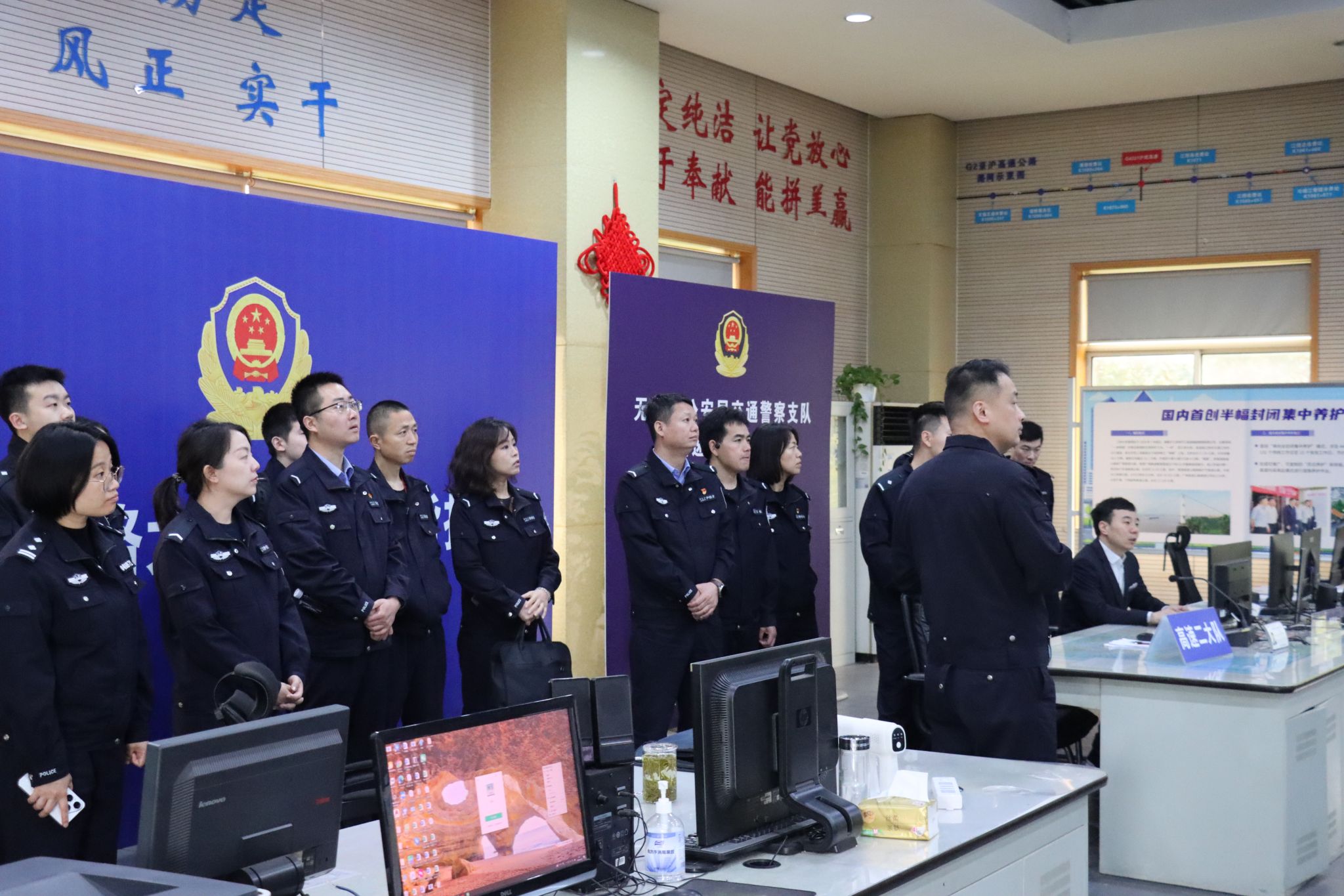 随后,成员们参观大队指挥室,近距离观摩一线高速交通警务工作,重点了解无人机在高速警务执法中的实战应用,直观感受科技赋能现代交通警务管理的实践成效,深刻认识到前沿警务技术对提升道路安全管控、维护公共安全、筑牢国家安全防线的重要作用。
